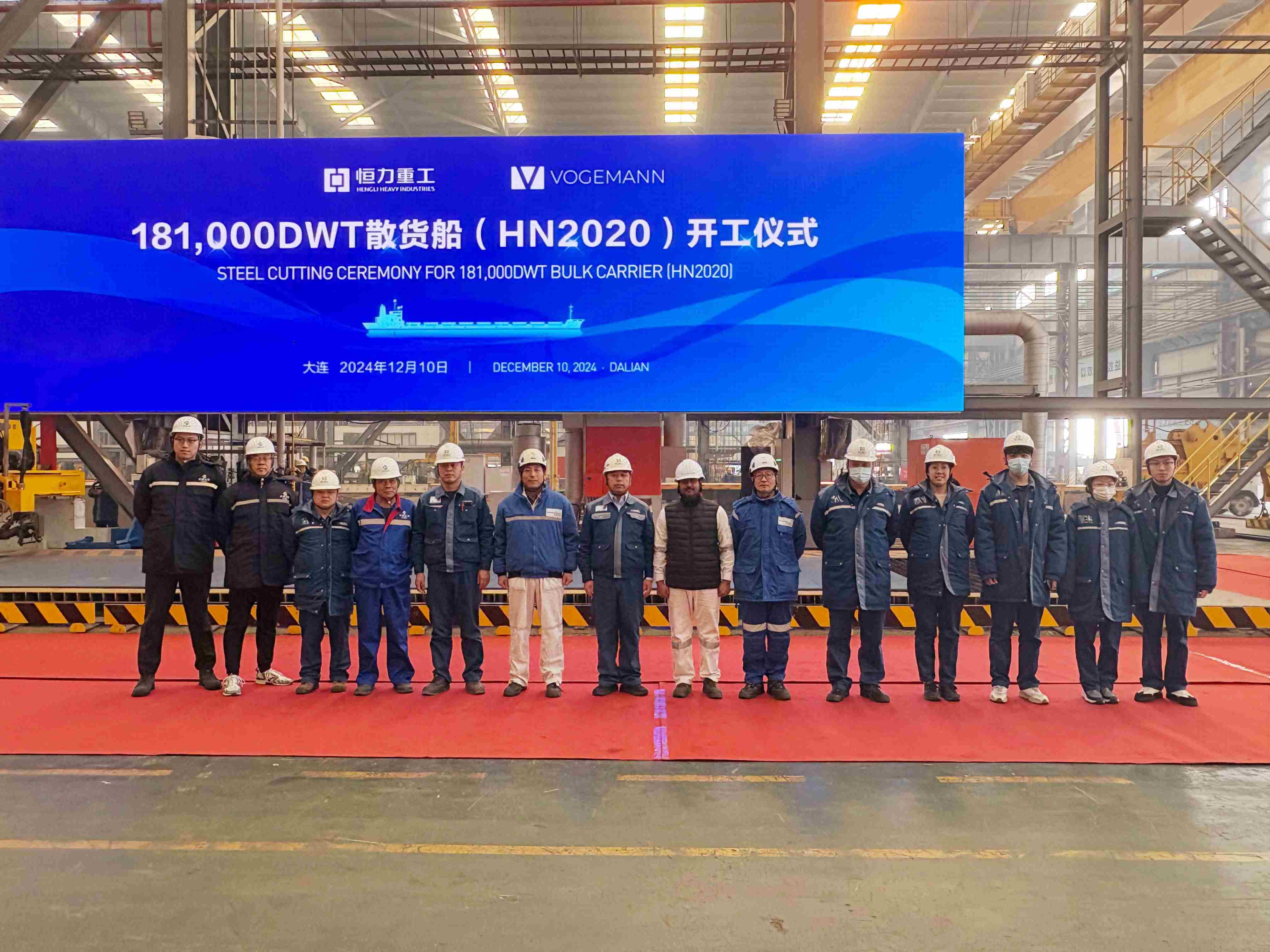 On December 10th, a steel cutting ceremony was held for 181,000DWT bulk carrier(HN2020) destined for export to Germany. The event was witnessed by representatives from the ship-owner's on-site team, Genertec CMC’s on-site group, DNV GL Classification Society, and relevant departments of Hengli Shipbuilding. This marks the project's official entry into the construction phase.